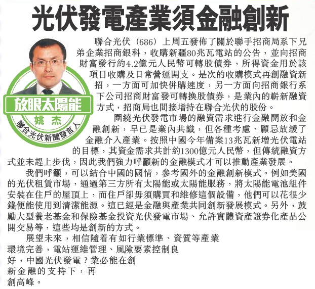 联合光伏新闻发言人:姚杰
