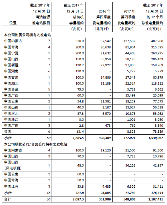 (中国香港,2018年1月12日)全球领先的生态发展解决方案供应商——熊猫绿色能源集团有限公司(“熊猫绿能”,股份代号:00686.HK)宣布,2017年全年总发电量录得约21.07亿度,同比大增57%。