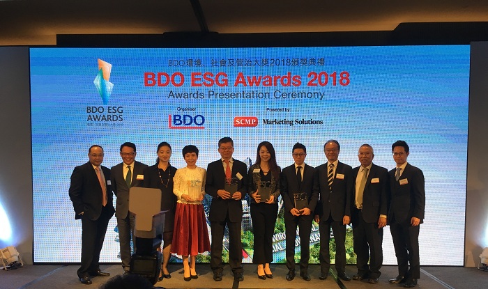 此届BDO ESG年度大奖是为表扬于环境、社会及管治(ESG)范畴上表现突出并有积极影响的香港上市公司而设。BDO为全球五大会计网络之一,是由世界各地独立的专业会计师事务所组成的国际会计、税务及商务咨询网路。其香港成员所最近进行了一项调查,检阅了香港联合交易所300家主板上市公司于2016财政年度作出的环境、社会及管治披露。调查结果显示,虽然超过六成于2016财年首次编制环境、社会及管治报告之香港上市公司的披露水平已超越最低要求,然而,企业在环境、社会及管治报告方面所投放的资源依然有限,可于多方面进一步提升报告水平。因此,大会希望透过奖项鼓励各企业必须关注社会责任,并纳入可持续发展于其业务模式上,这不仅是为了遵守法规,也是为了提高公司于可持续长期增长的价值。