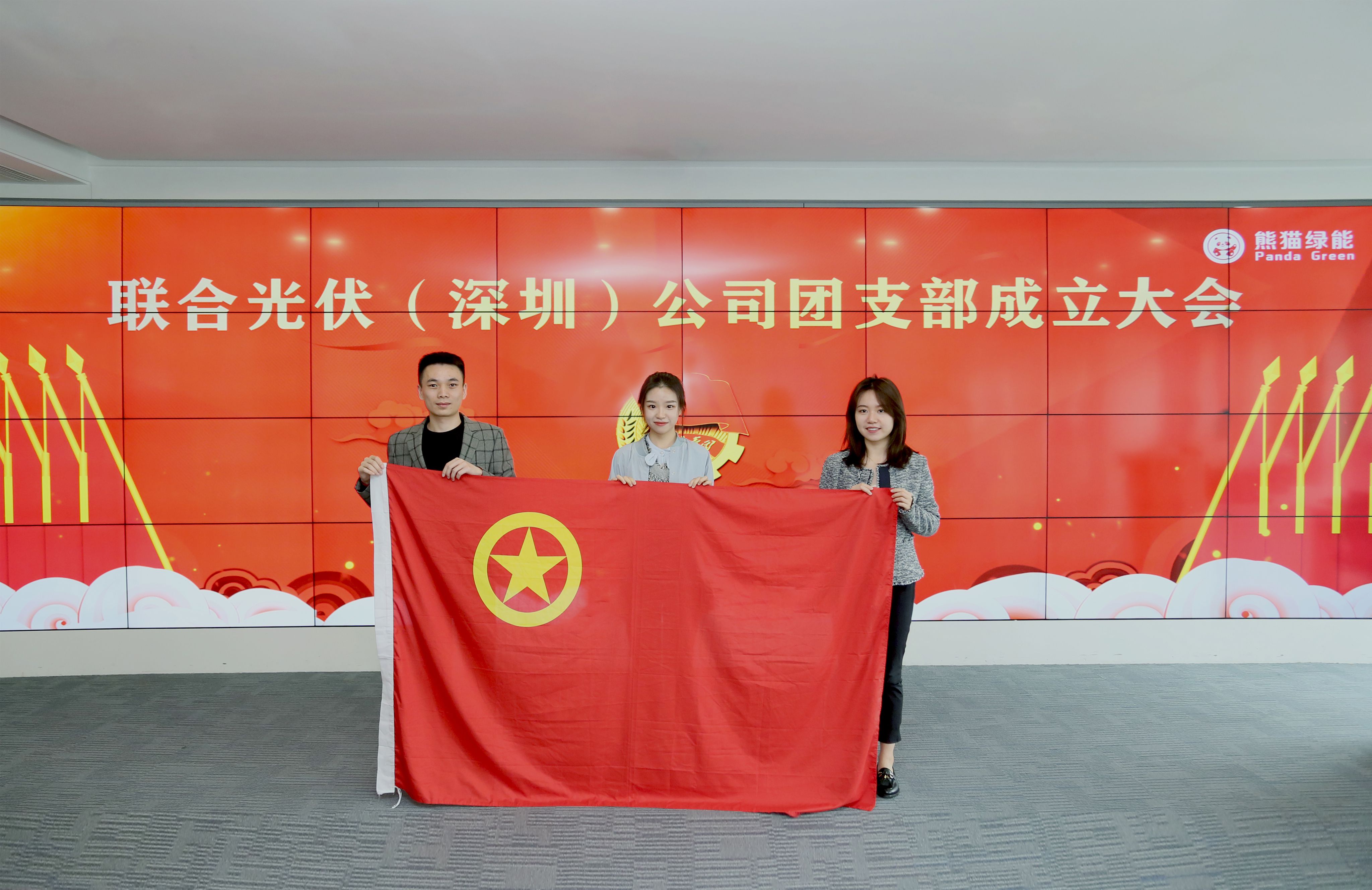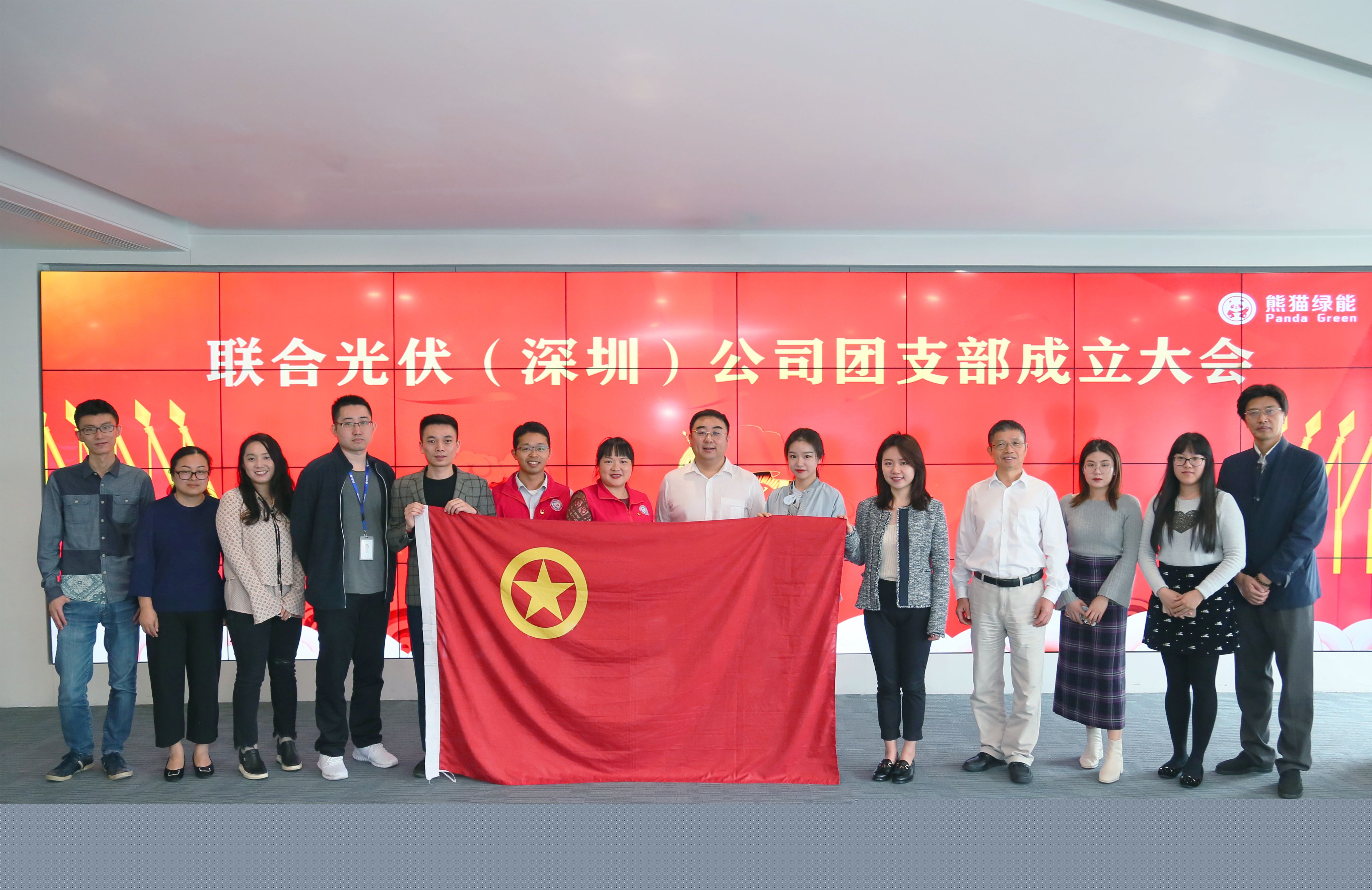在公司领导高度重视、上级团组织大力支持以及公司青年团员的积极响应下, 2019年12月17日,熊猫绿能集团旗下联合光伏(深圳)有限公司团支部成立仪式在深圳公司举行。深圳市南山区招商街道沿山社区党委副书记赖惠琴、团委书记吴文才一行莅临公司指导工作并见证了成立仪式。