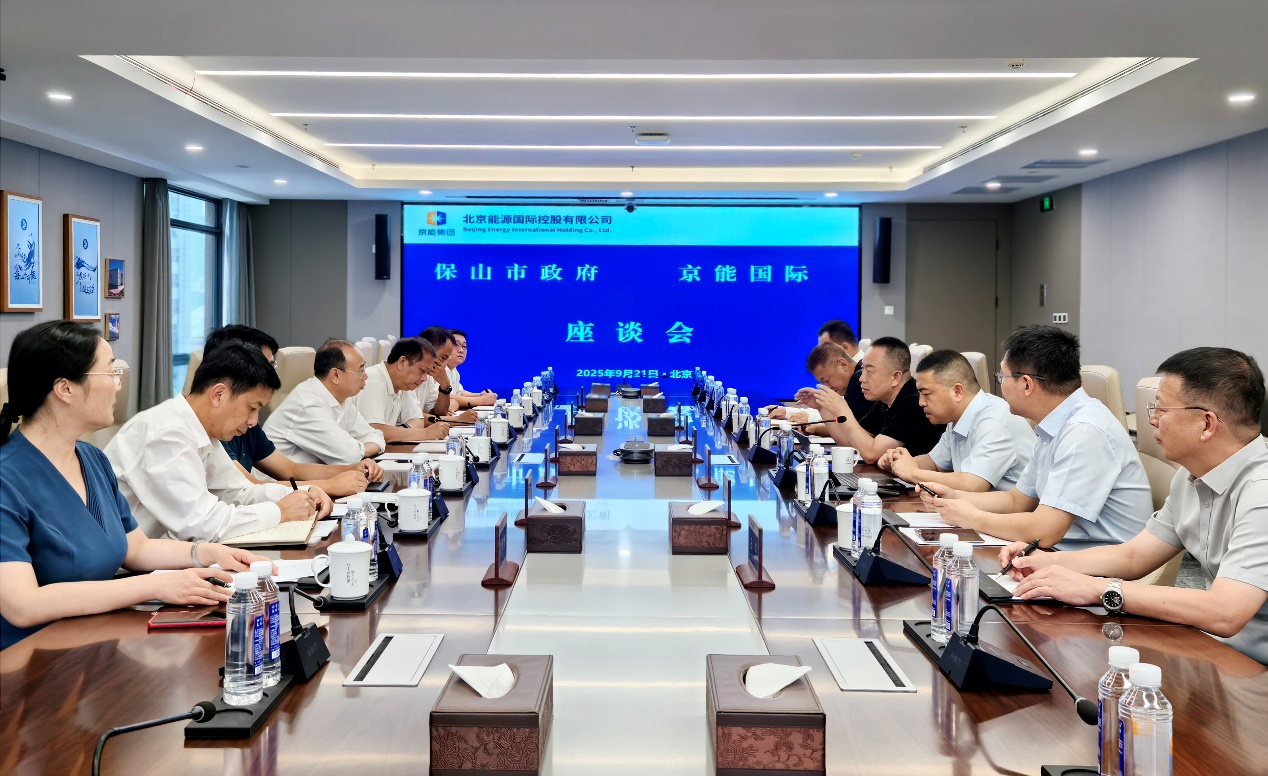 On September 21, Zhang Ping, Chairman of the Board of Beijing Energy International, met with Zuo Guang, Mayor of Baoshan City, Yunnan Province, and his delegation in Beijing. Both parties held discussions to further deepen cooperation in areas such as clean energy and capital operations.