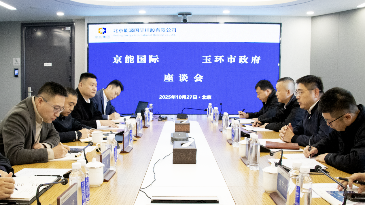 On October 27, Jia Geng, Vice President of Beijing Energy International, met in Beijing with Dong Jie, Member of the Standing Committee of the CPC Yuhuan Municipal Committee and Executive Vice Mayor of Yuhuan City, Zhejiang Province. The two sides held in-depth discussions on potential cooperation in the fields of the marine economy, marine new energy, and marine ranching.