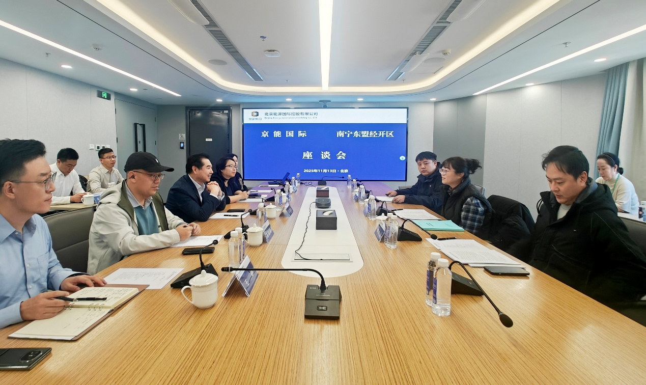On November 13, Liu Guoxi, Party Secretary and Chairman of the Trade Union of Beijing Energy International, met in Beijing with Luo Zishan, Member of the Party Working Committee and Deputy Director of the Administrative Committee of the ASEAN Economic Development Zone of Nanning, Guangxi. The two sides held discussions on deepening cooperation in the field of new energy.
