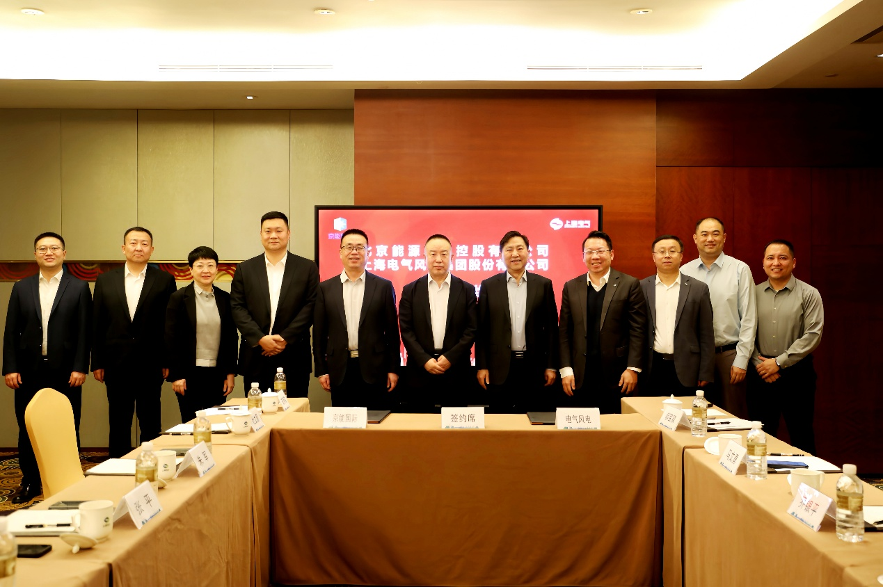 On January 15, Zhang Ping, Executive Director and President of Beijing Energy International, along with Executive President Zhu Jun, visited Shanghai to meet with Qiao Yinping, COO of Shanghai Electric Group, Party Secretary and Chairman of Shanghai Electric Wind Power Group (SEWPG), as well as Wu Gai, Party Committee Member and Vice President of SEWPG. The two parties held in-depth discussions on deepening cooperation in the new energy sector and signed a strategic cooperation agreement.
