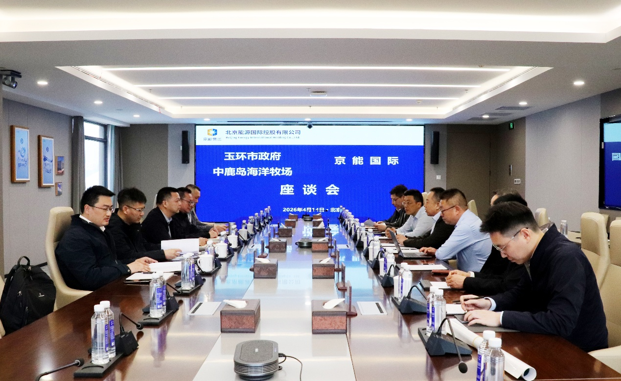 On April 14, Zhang Ping, Executive Director and President of Beijing Energy International, met in Beijing with Xi Shengdong, Vice Mayor of Yuhuan City, Zhejiang Province, and his delegation. The two sides held in-depth discussions on cooperation in areas including the Zhongludao Modern Marine Ranch Complex Project and the high-quality development of the marine economy.